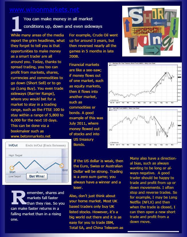 When you have been trading futures, options, stocks and commodities for over 26 years, it can be easy to forget what it was like starting out. In this booklet, I will share with you some of the secrets that I wish I’d known when I started trading. Whilst I have focused on Financial Spread Betting, the principles I outline are valid, regardless if you’re using CFDs, FX, Futures, Exchange Traded Funds, or just buying shares via broker.