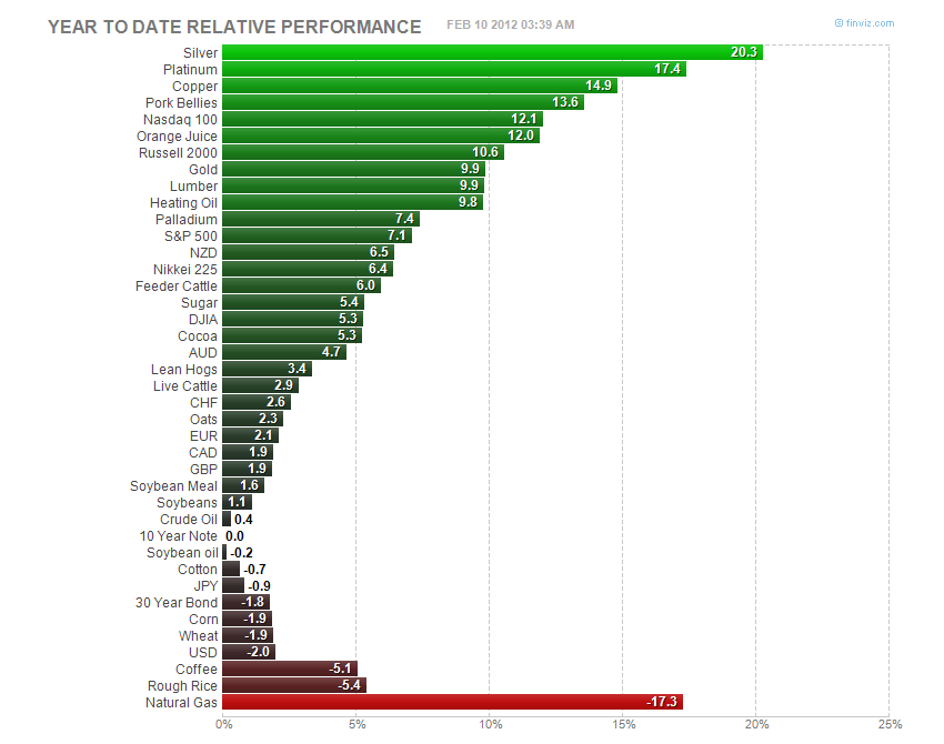 So far this year Silver has been the best performing market with a gain of over 20% closely followed by Platinum which has been a poor performer the last 12 months however I look for Platinum to play some catch up on Gold. The worst market has been Natural Gas down over 17% with the market over supplied NG is close to historical low prices.