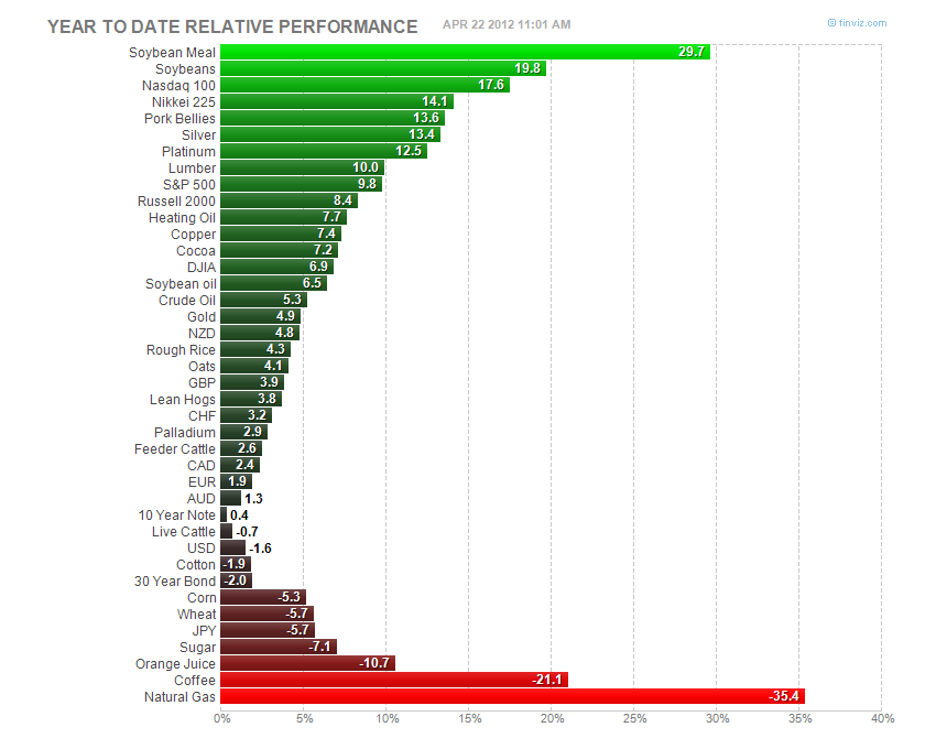 So far this year Soyabean Meal and Soyabeans have been the top two markets. Whilst spread betting commodities may seem difficult in reality it’s not that hard at all. Most major spread betting companies like IG Index or City Index will allow you to place bets and normally starting with fairly small stakes. On the short side (remember we can bet to go down as well) Coffee prices and Natural Gas have been the best shorts.