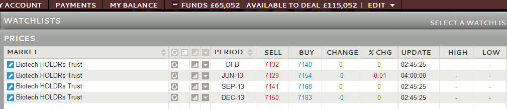 As well as trading the major Financial Indices such as the Dow Jones, S&P500, Dax and FTSE100 it is also possible to profit from sectors and Exchange Traded Funds. With Financial Spread Betting you can also look to short an ETF and profit from a down move.