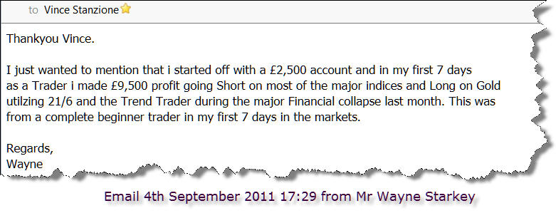 Before you try Financial Spread Betting it’s well worth getting some good advice and training. Spread Betting Veteran Vince Stanzione has been trading for over 26 years and has produced a course “Making Money from Financial Spread Trading” which is a 200 page workbook, two and a half hours of DVDs and a member’s only website. To find out more go to www.fintrader.net